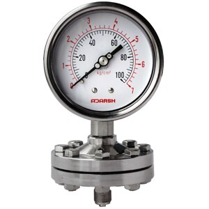 Applications :- Pharmaceutical, Chemical, Petrochemical, Oil & Gas, Refinery, Paper & Pulp, Sugar, Breweries, Food & Beverages, Cement Industries, etc Features :- 4 Dial Sizes 100mm (4") and 150mm (6") 4 SS316 Diaphragm and Bottom Chamber/Flange 4 3/8â€Â, ½†bsp / npt connection or Flanged End as per DIN, ANSI, BS Standards 4 Bottom or Back Mounted 4 Accuracy ±1.6% F.S.D. Options Available :- 4 Special Diaphragm Material like Tantalum, Hastelloy-C, etc... 4 Teflon Coating / Lining on Diaphragm and wetted parts 4 Electric Contacts 1N0+1NC and others 4 Remote Capillary Seal